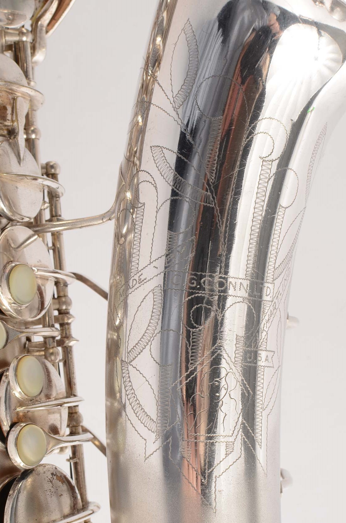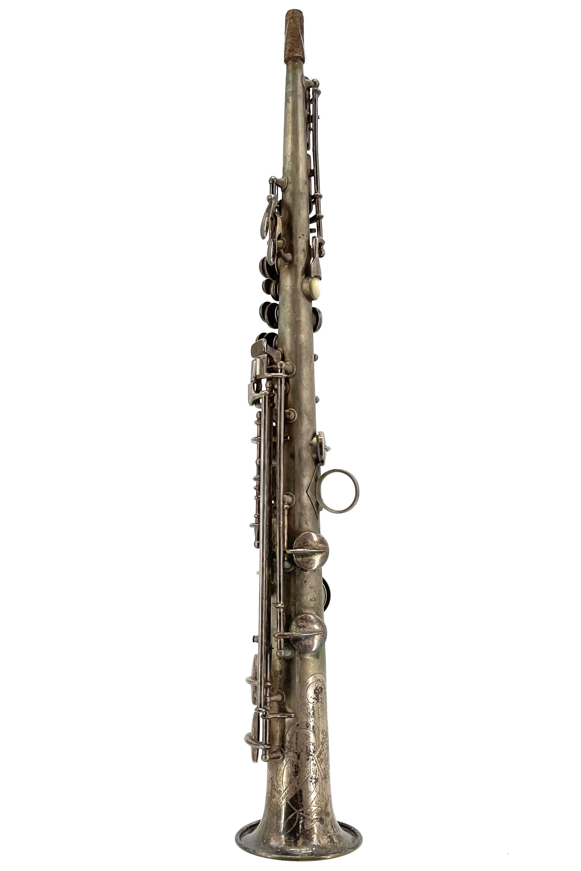 At serial number 206,492 – a silver alto also has this engraving. However, in this case, the serial number is followed by an ‘X’, making the full serial number 206,492X. This alto also has the fully transitioned keywork of a 6M Artist Model. It is generally agreed that the ‘X’ stamp at the end of the serial number means a mistake was made when stamping the serial number. Most likely the serial number is actually 260,492.