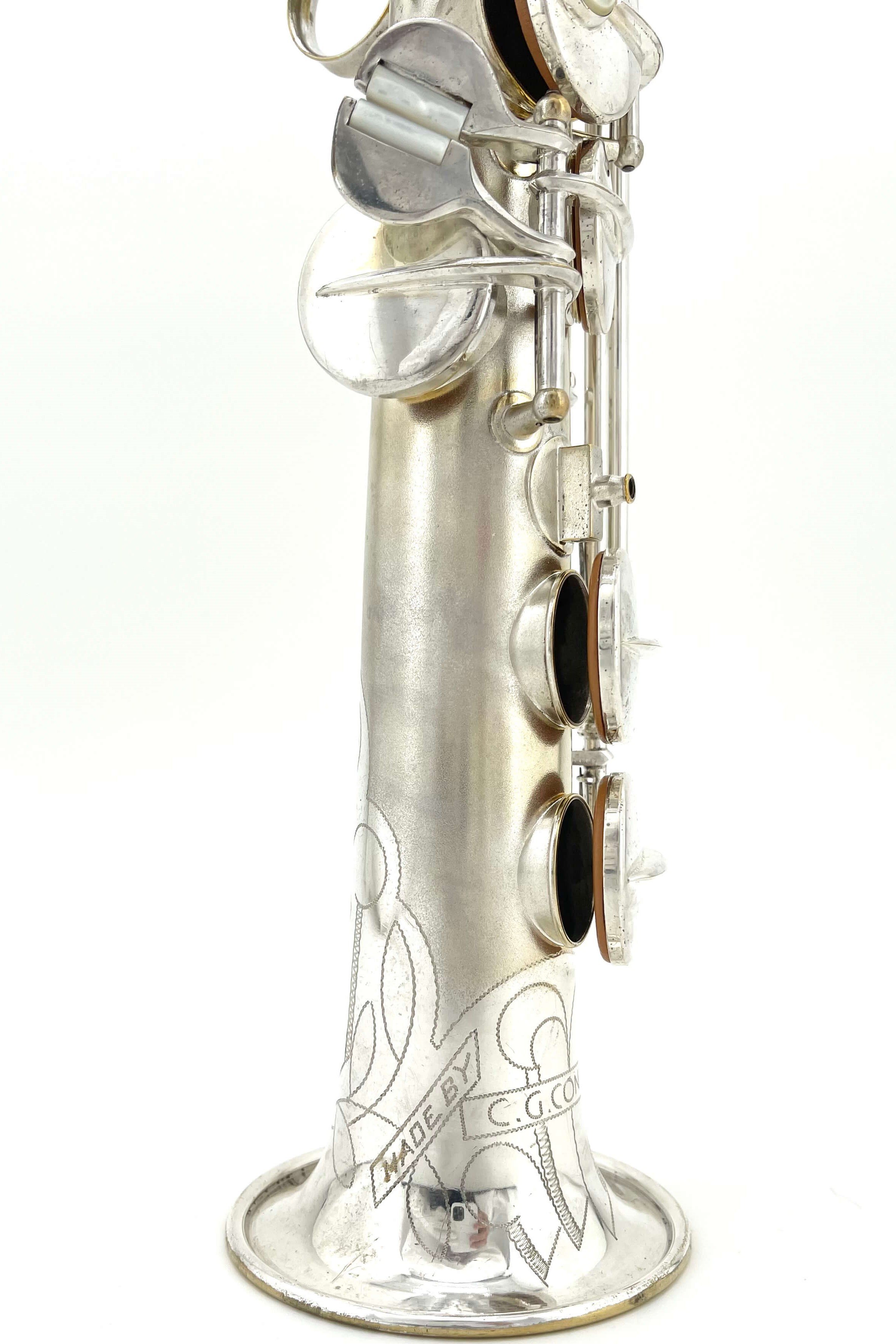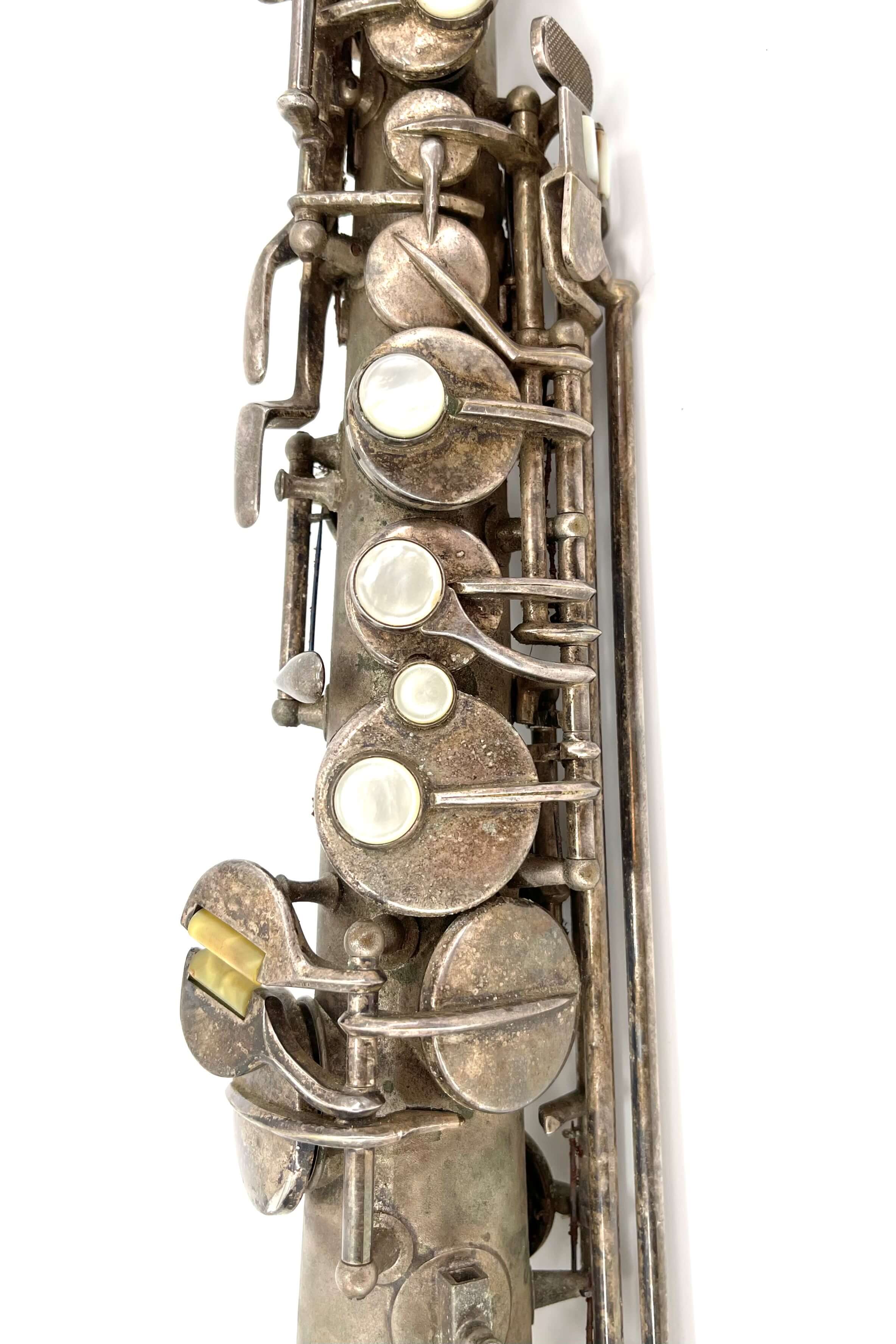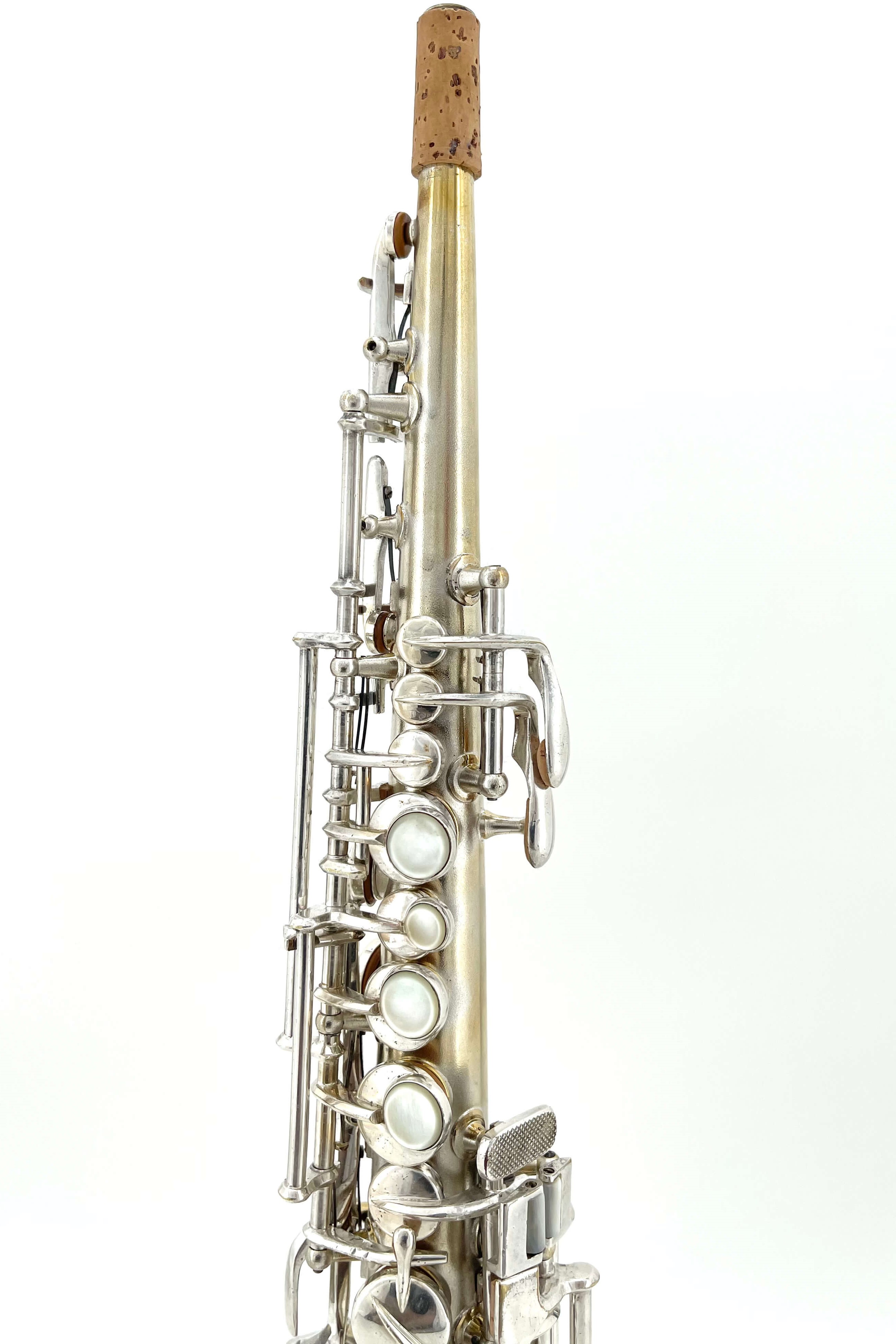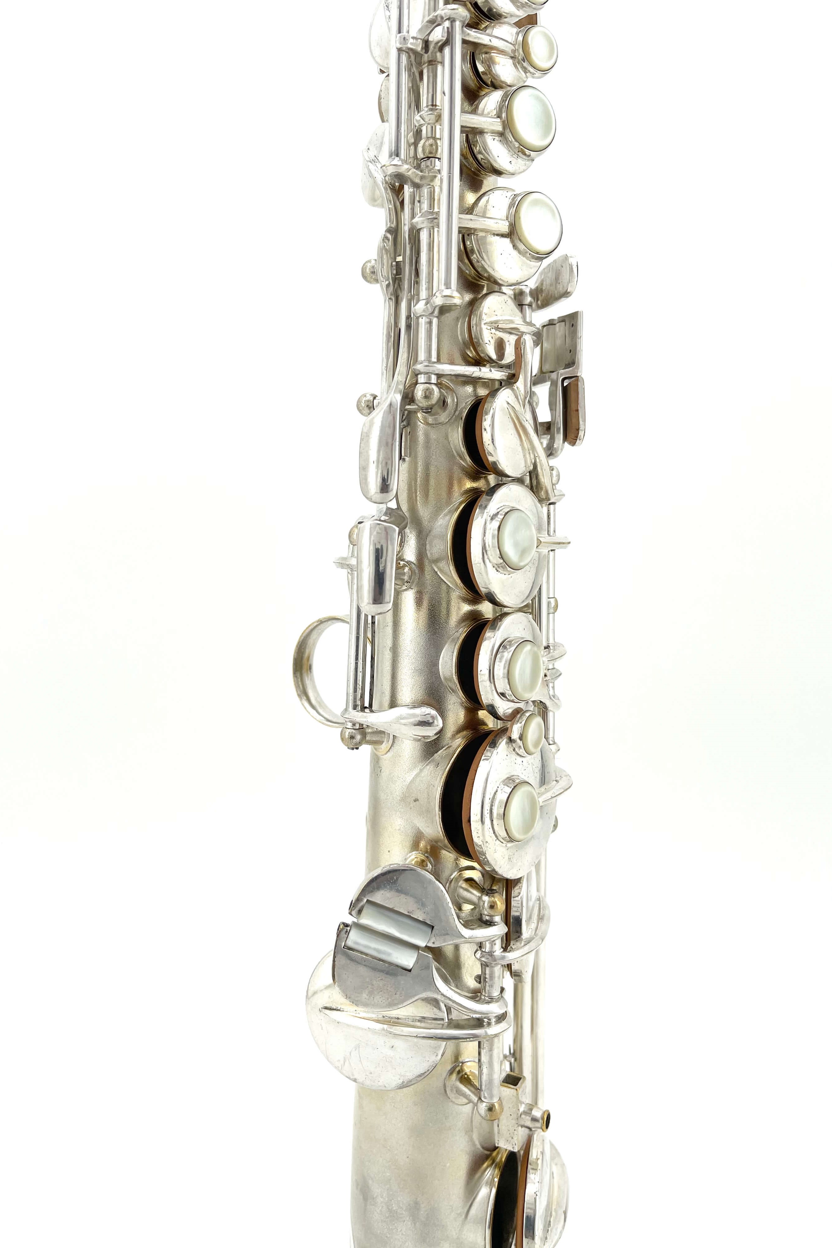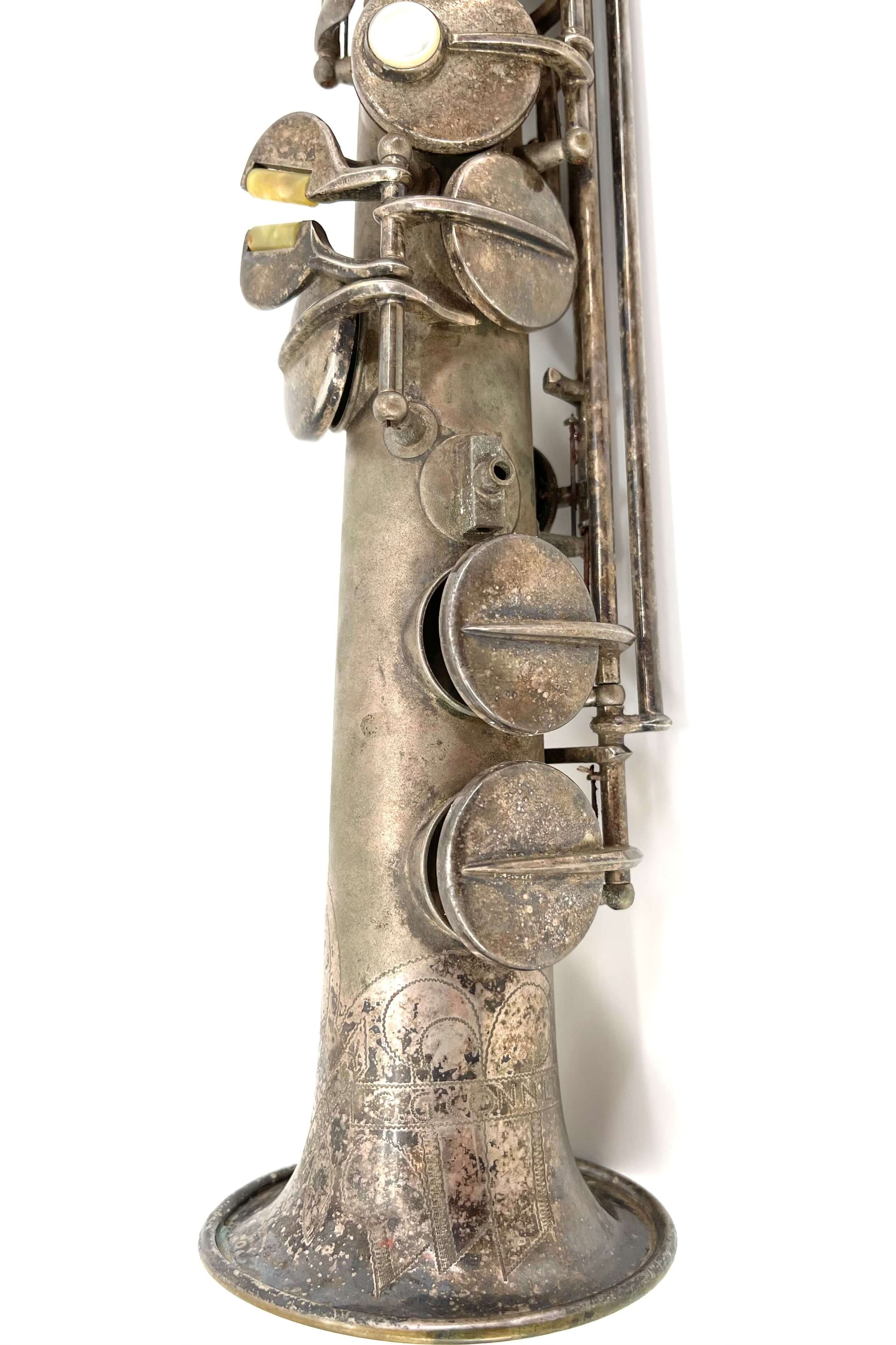 While working one day, a fellow saxophone collector who knows my love for silver Conns sent me a message with the link to the listing. I was in the middle of a meeting at the time, and not really looking closely at first, I dismissed it. “A C-Soprano…. I’ve got a NWII already, don’t need another” I said, quickly looking at the first picture and serial number.