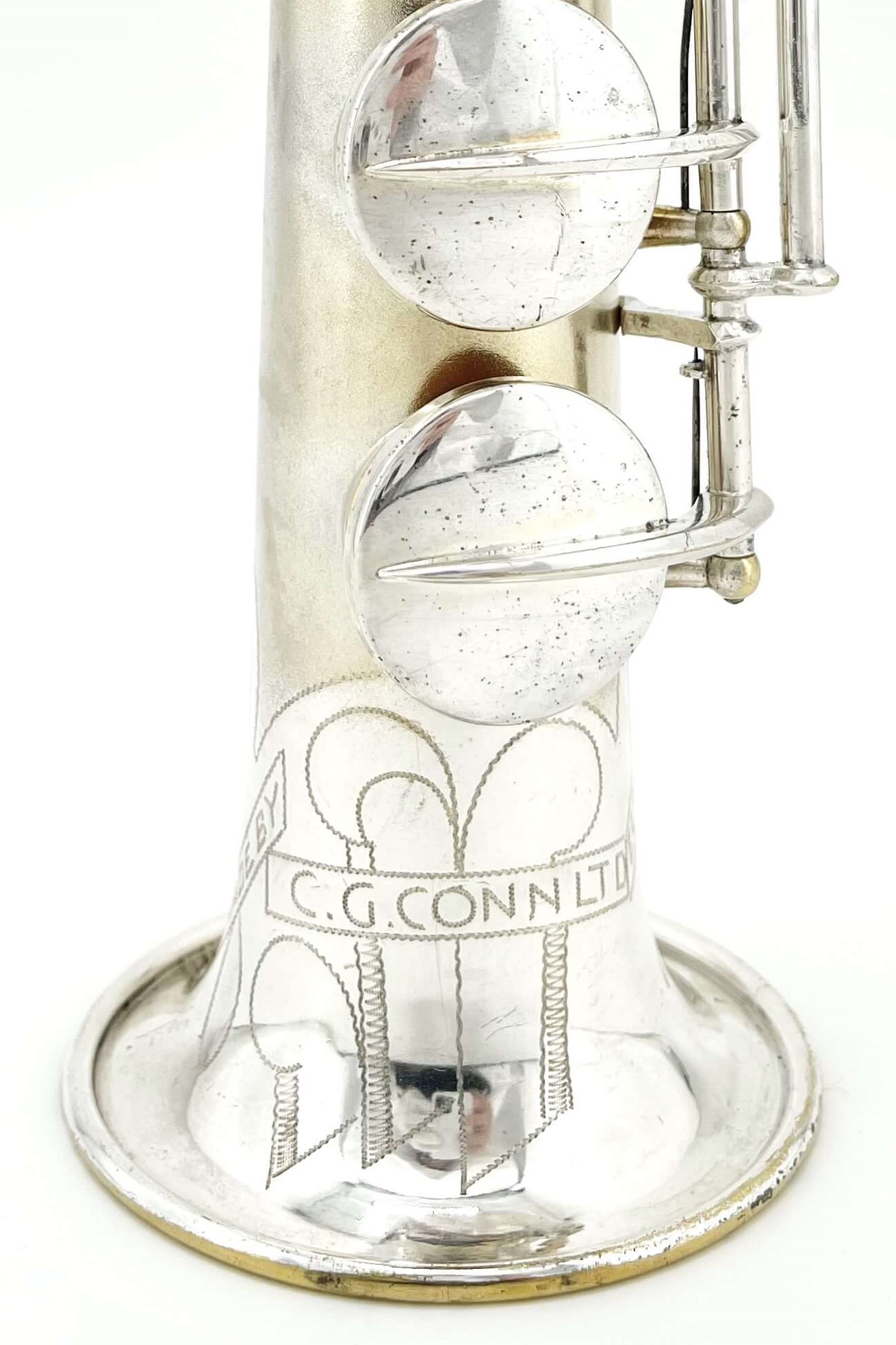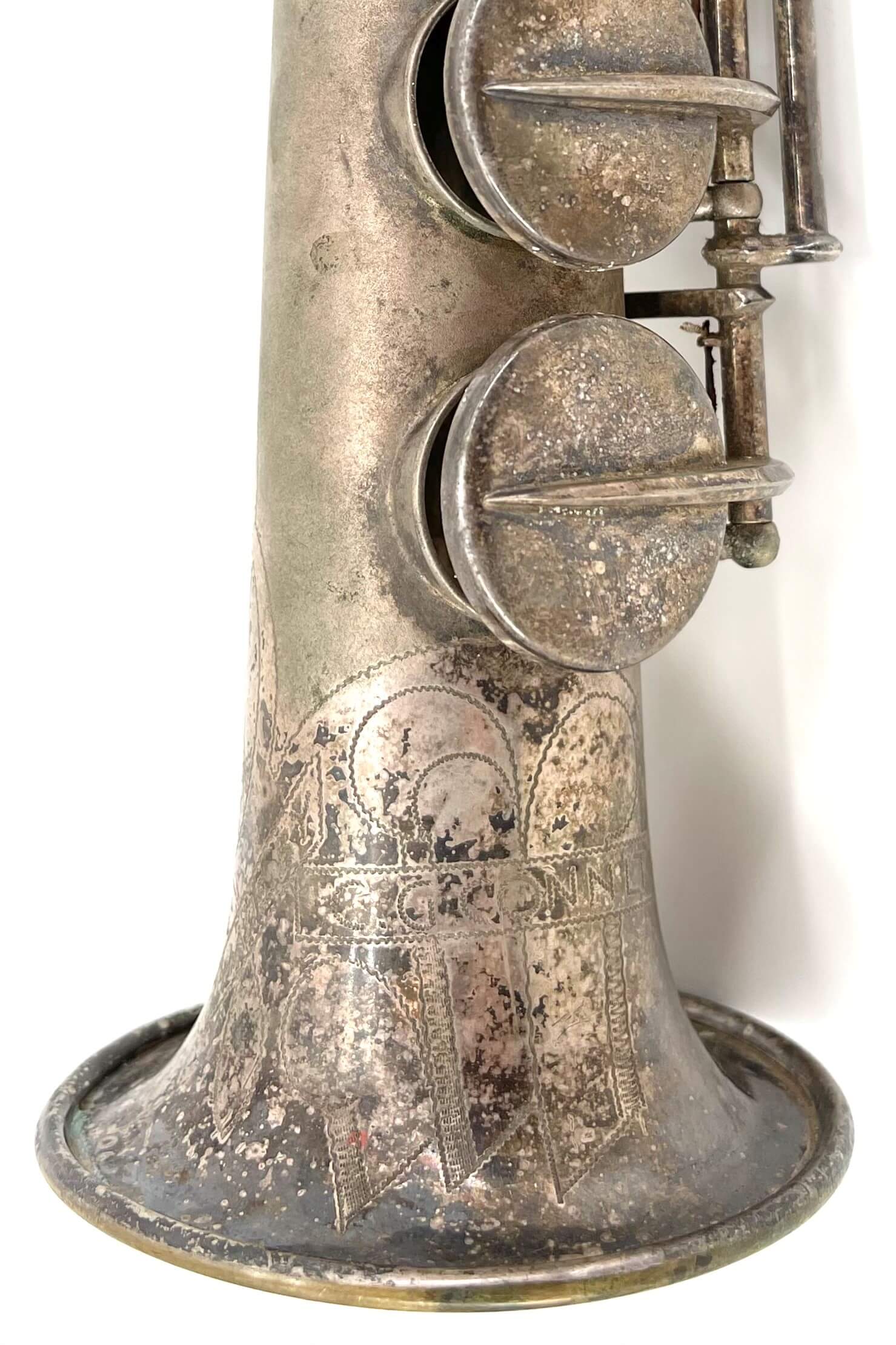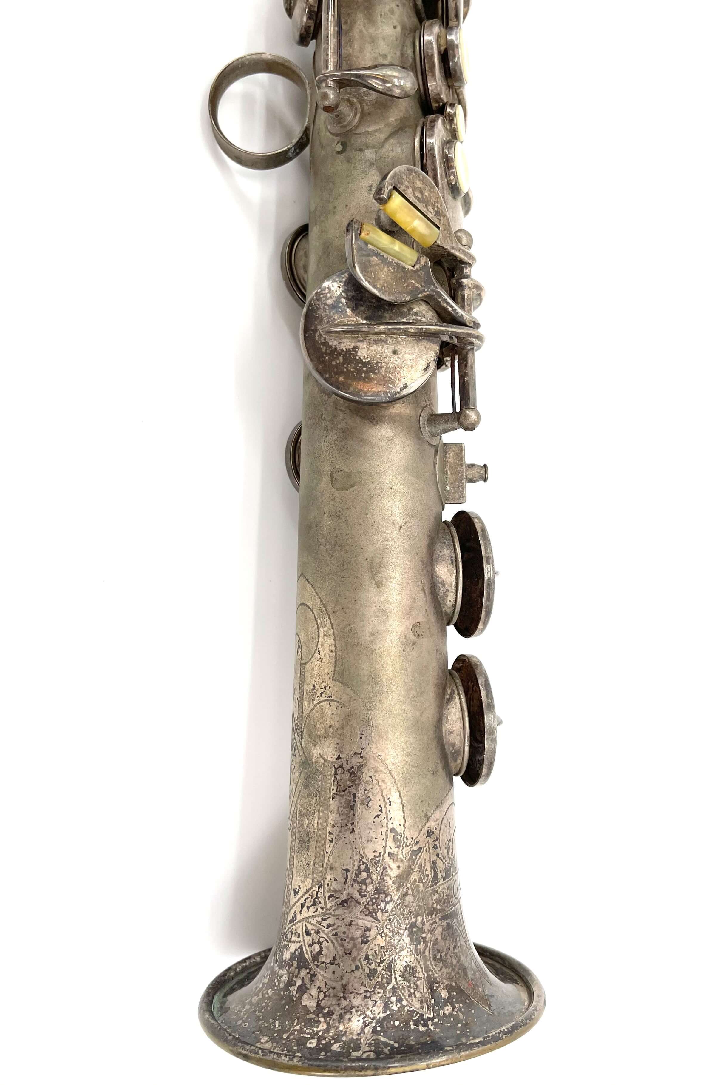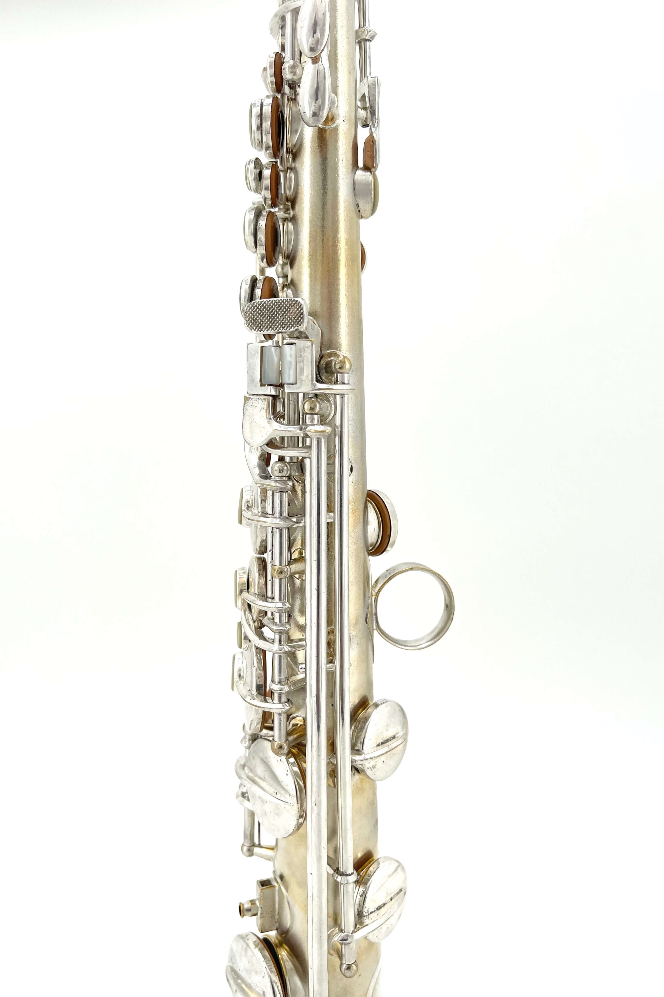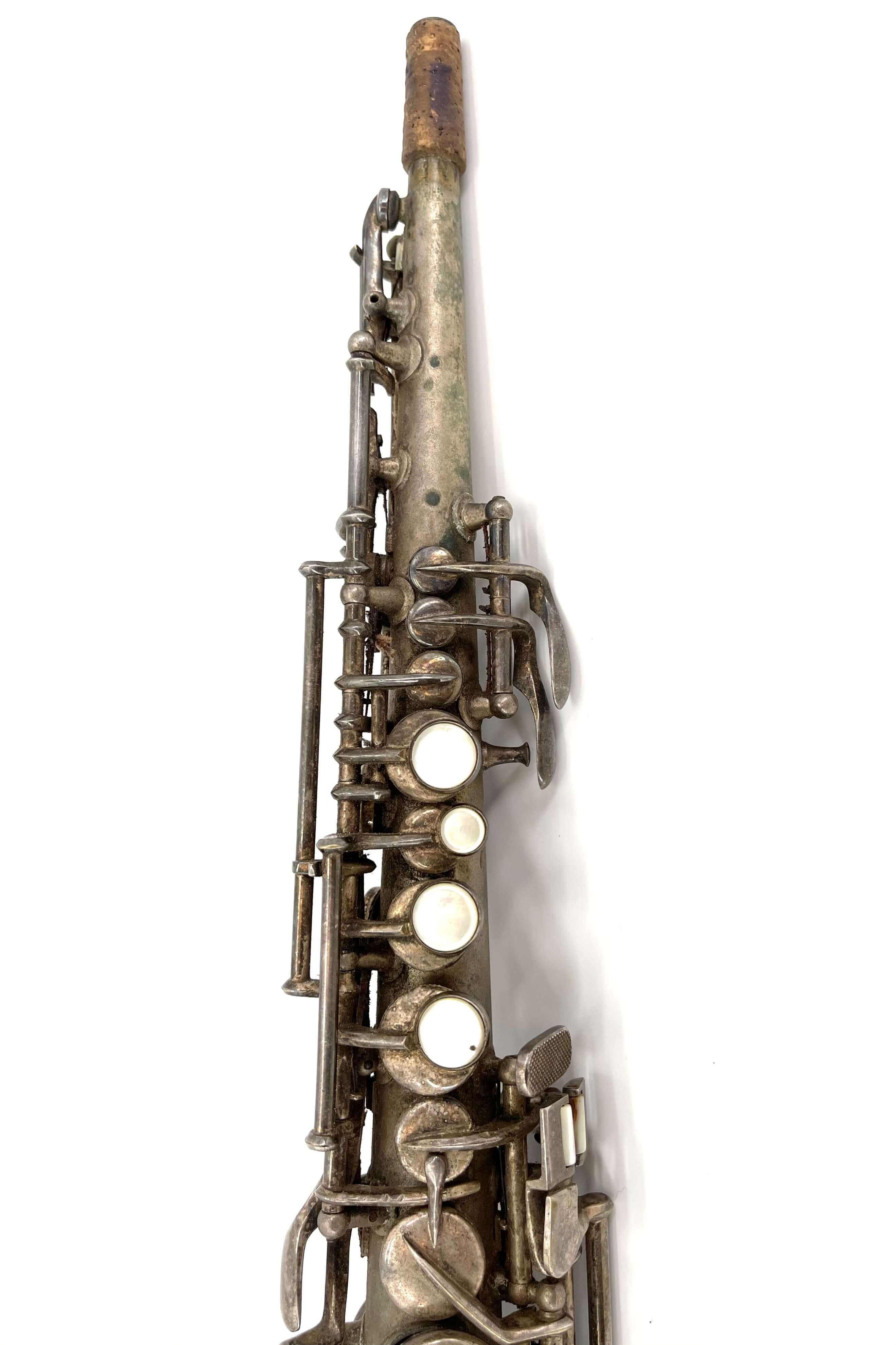 While working one day, a fellow saxophone collector who knows my love for silver Conns sent me a message with the link to the listing. I was in the middle of a meeting at the time, and not really looking closely at first, I dismissed it. “A C-Soprano…. I’ve got a NWII already, don’t need another” I said, quickly looking at the first picture and serial number.