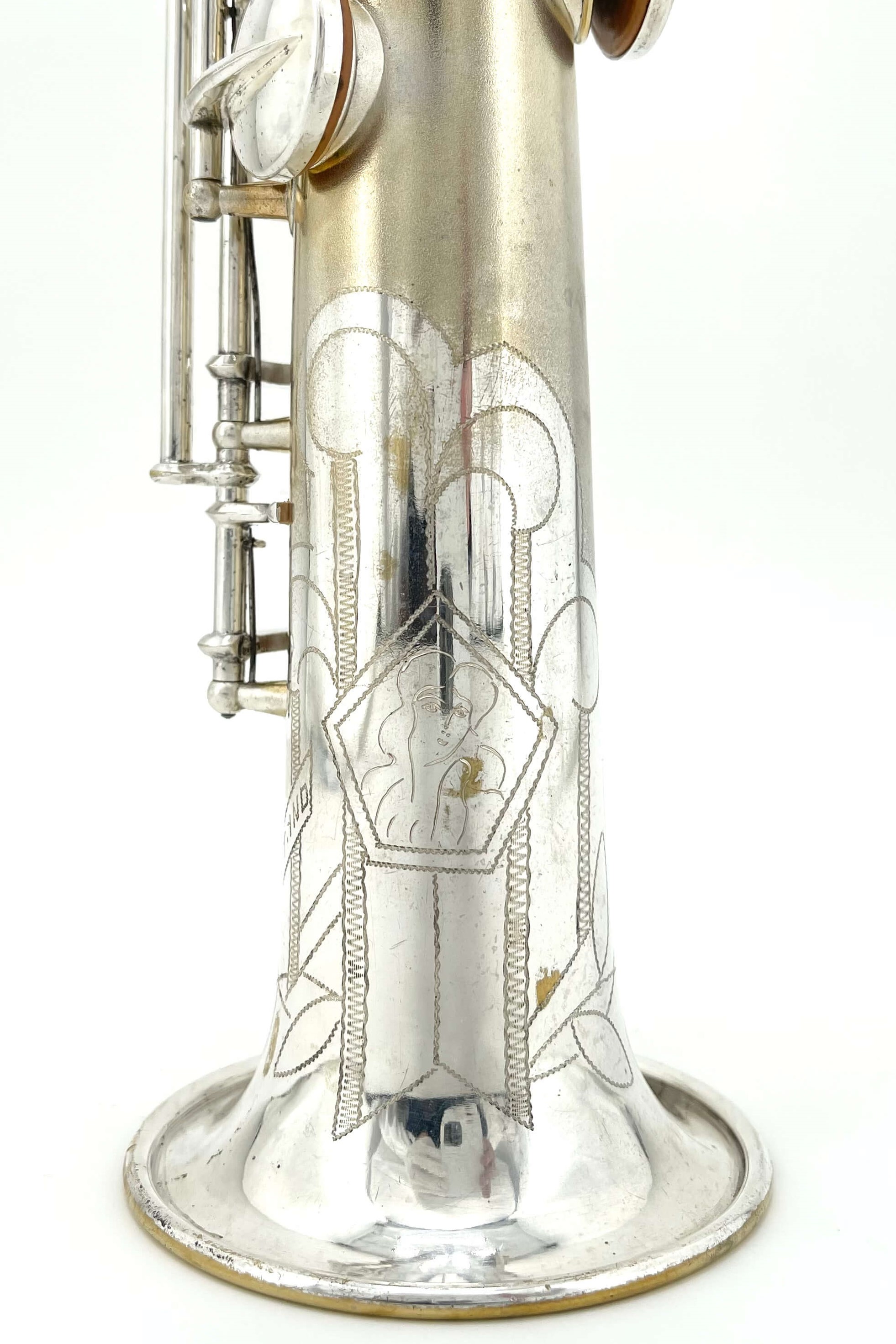 But what about our 204,818 serial number Naked Lady C Soprano, manufactured nearly 5 years prior? The CONNsortia galleries have a few other saxophones with Naked Lady engraving prior to 250,127 that may help explain.